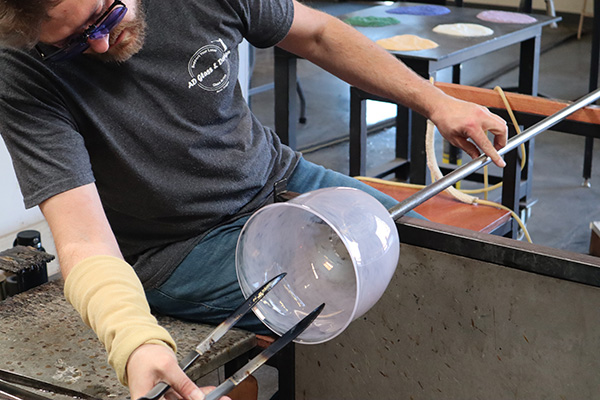 Welcome to our Studio. Pictures may say a thousand words but they will never depict what's happening in person. Schedule a private demo or just drop in. You may have to wait and watch glassblowing for a short while we get to a stopping place.