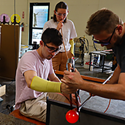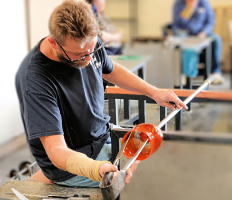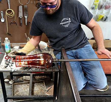 Welcome to our Studio. Pictures may say a thousand words but they will never depict what's happening in person. Schedule a private demo or just drop in. You may have to wait and watch glassblowing for a short while we get to a stopping place.